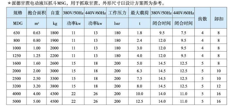 Electro hydraulic grab is a kind of grab with its own hydraulic system such as motor and hydraulic pump, which is driven by external power supply to realize opening and closing. The grab depends on the forward and reverse rotation of the motor or the hydraulic directional valve to control the opening and closing of the grab. Electro hydraulic bulk cargo grab is an effective tool for handling bulk cargo such as yellow sand, coal, mineral powder, ore and cement in various harsh environments. The grab is equipped with a hydraulic system, and the main components of the hydraulic system, such as valve group, seals, valve blocks, etc., are European and American brands. The hydraulic pump adopts constant power pump and hydraulic servo system. The system pressure change can effectively control the output of the pump. When the maximum pressure is reached, the flow of the pump is very low, which greatly reduces the overflow, reduces energy consumption, and reduces the oil temperature, so as to use long-time continuous work and greatly improve the production efficiency. The grab has simple structure and convenient operation, and can work in various harsh environments. The unique jaw curve is particularly conducive to the loading and unloading of various bulk cargoes. The upper part of the grab is equipped with a cable interface to facilitate the connection with the crane.